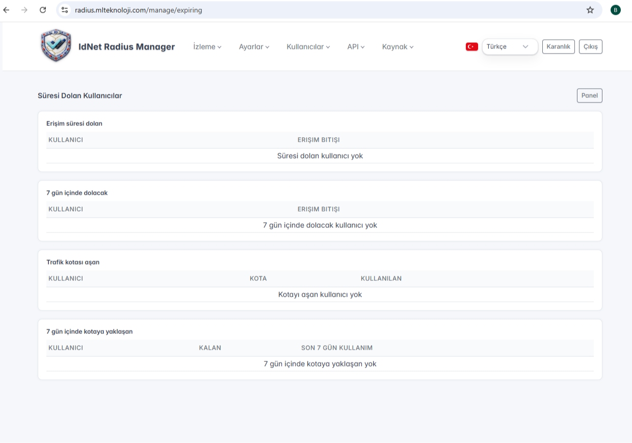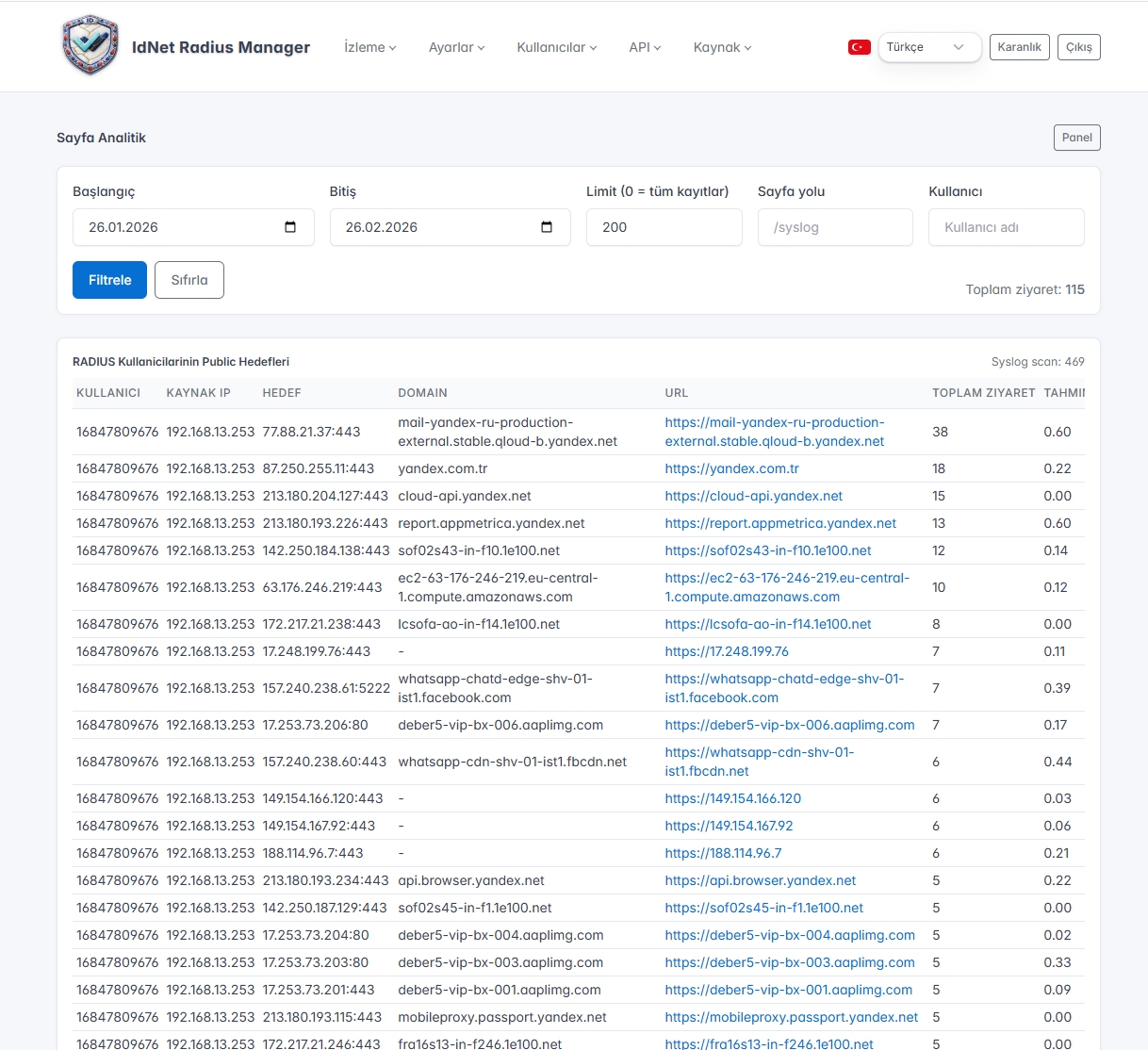 IDNET Radius Manager, tek bir panelde bağlantı güvenliği, kullanıcı yönetimi ve operasyon otomasyonunu birleştirir.
